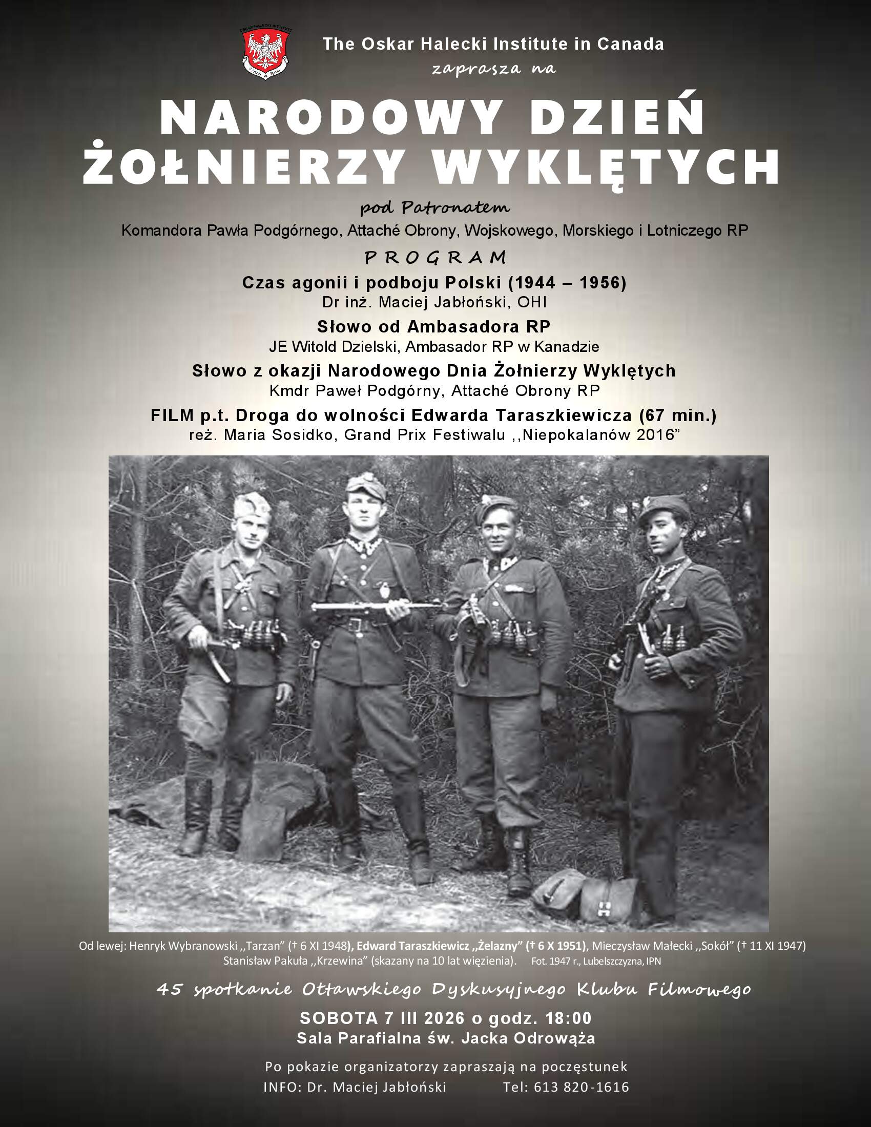 Z okazji Narodowego Dnia Żołnierzy Wyklętych, The Oskar Halecki Institute in Canada